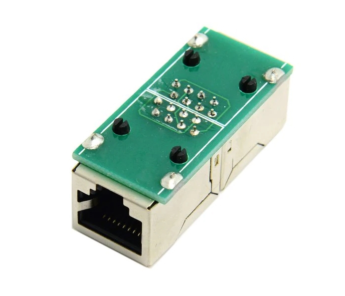 Stíněný prvek umožňující spojení 8-žilových kabelů kategorie 5/6 s osazenými konektory RJ45.