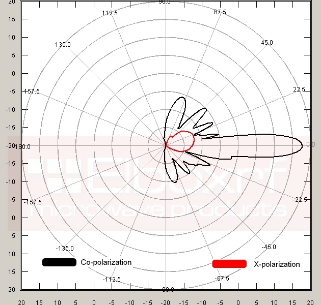 Extrémní vysílací výkon (18dBi) díky technologickému provedení formou RSLL (potlačení bočních laloků) a ZERO SQUINT (nulová úhlová odchylka), vyzařovac