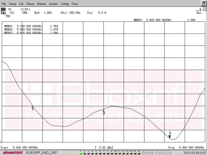 Hodnoty VSWR: 1,5 max