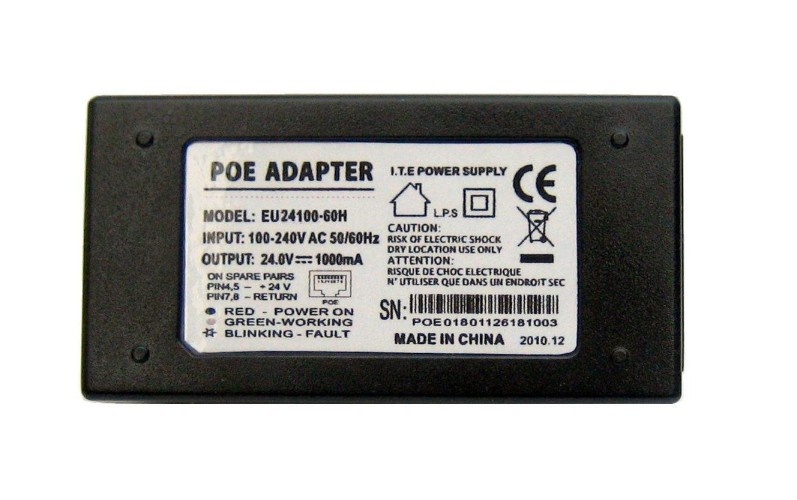 Zemněný univerzální 24V spínaný zdroj s integrovaným POE injektorem a podporou rychlostí 10/100Mbps.