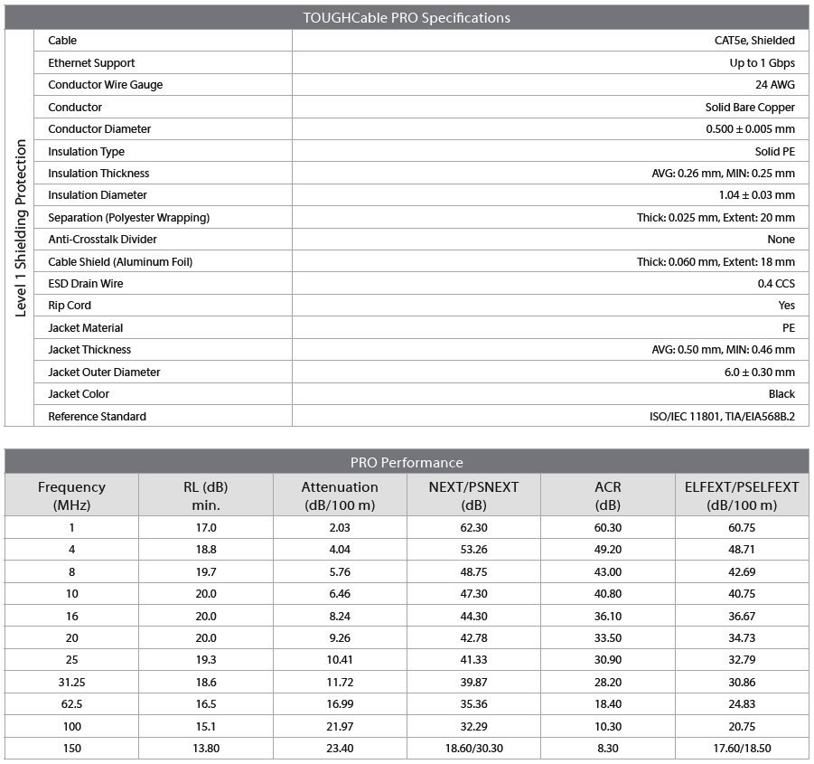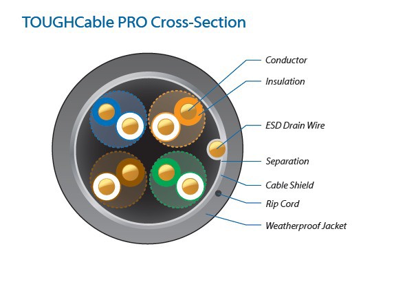Both TOUGHCable models have an integrated ESD Drain wire to prevent ESD attacks & damage.