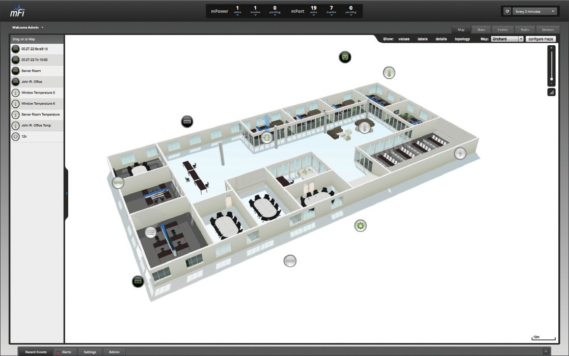 Řešení mFi k vzájemnému propojení v automatizovaném systému pro ovládání a sledování pracovních či obytných prostor.