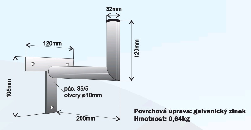 WiFiHW • KON-3-20 • Tříbodová konzole na zeď, 20cm, průměr trubky držáku 32mm