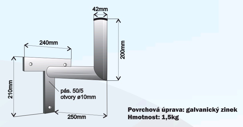 WiFiHW • KON-3-25 • Tříbodová konzole na zeď, 25cm, průměr trubky držáku 42mm