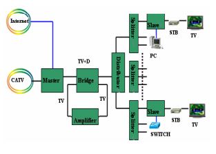 Jednoduše použitelné zařízení pro zapojení budovy k internetu po společném koaxiálním rozvodu. Umožňuje komunikaci mnoha jednotek po jediném koaxiálním vedení signálovou rychlostí až 700Mbps.
