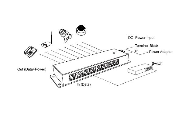 Přidáním tohoto průchozího panelu do rozvaděče získáte napájecí centrum, které jednoduchým způsobem zapojíte mezi stávající switch a patchpanel, který již vede k napájenému zařízení (IP kamera, IP telefon, bezdrátové prvky, apod.)