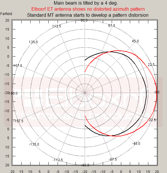 Vyzařovací diagramy ET antén vykazují na rozdíl od běžných MT (mechanical tilt) antén neměnou charakteristiku, nedochází k distorzi laloků a tím degradaci výkonu.