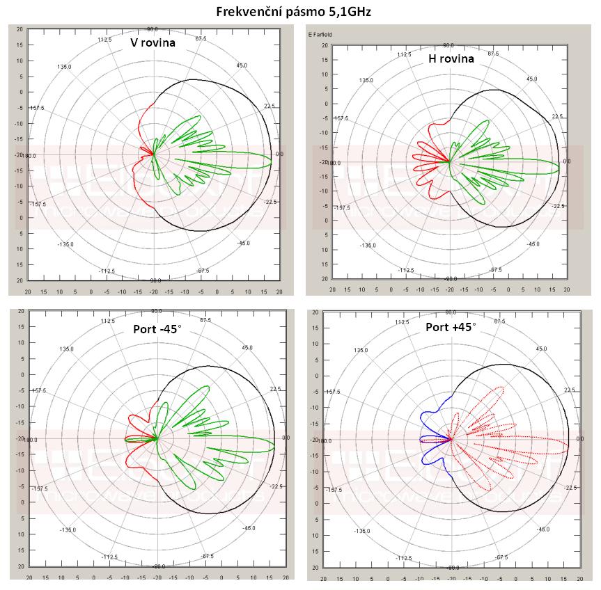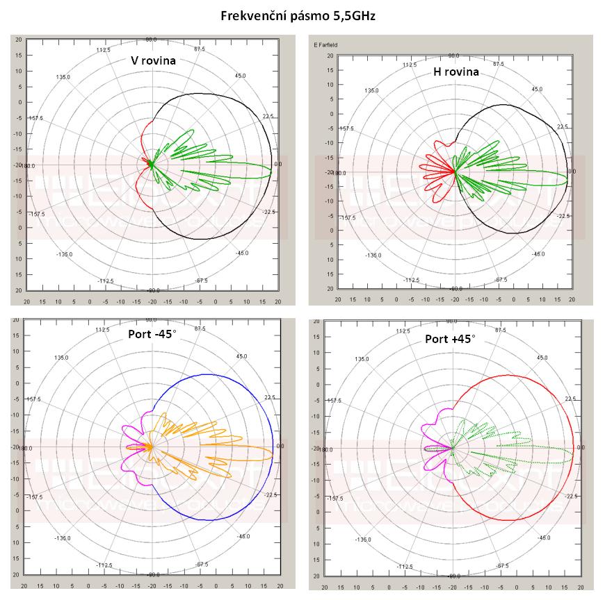 Polarizace: Linární, +/- 45° + HV nebo 0, 45, 90, 135°