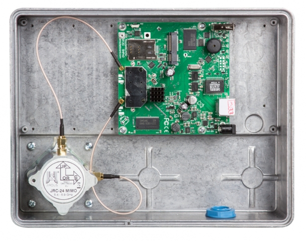 GentleBOX JR-250 S1 je kompletní kovový venkovní box pro AP, RouterBOARDY a další elektroniku a je přímo určen k montáži na antény JRC-xx a JRB-xx MIMO.
