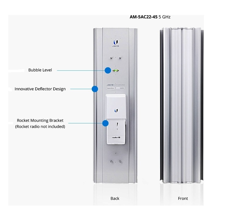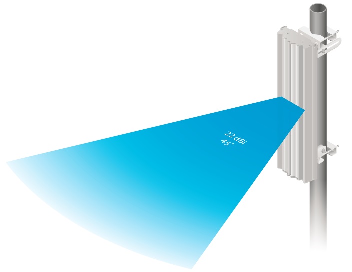 Dvoupolarizační sektorová 60° anténa designovaná pro nasazení s jednotkou Rocket 5AC-Lite (integrovaný držák na anténě) pro přístupové body s vysokou propustností.
