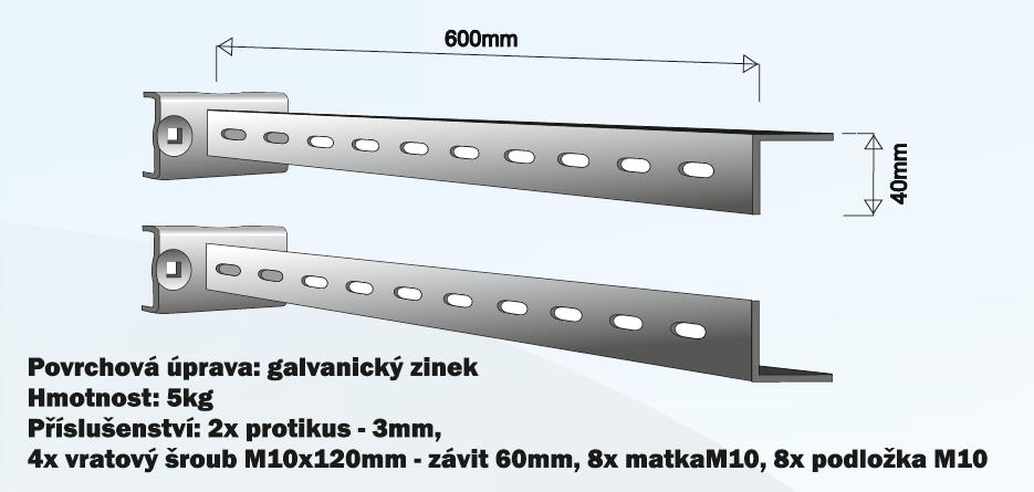 Držák pro uchycení rozvaděče na stožár v délce 60 cm. Povrchově je upraven galvanickým zinkem. Dodává se sada dvou držáků včetně třmenů pro uchycení.