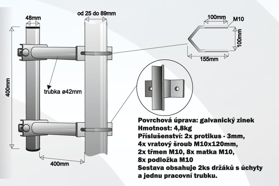 • sestava obsahuje 2ks držáků s úchyty a jednu pracovní trubku