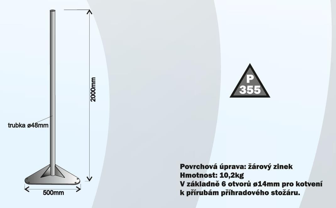 Nástavec 2m s trojůhleníkovou základnou pro Příhradové stožáry s přírubami o základně 300mm.