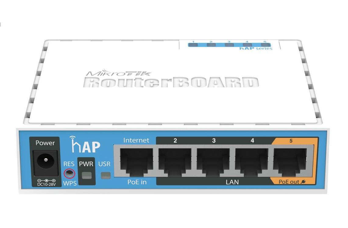 hAP je 2,4GHz ápéčko pro domácí použití nahrazující model RB951-2n, disponující kompletním servisem RouterOS funkcí, napájení prostřednictvím pasivního POE či spoludodávaným 24V adaptérem.