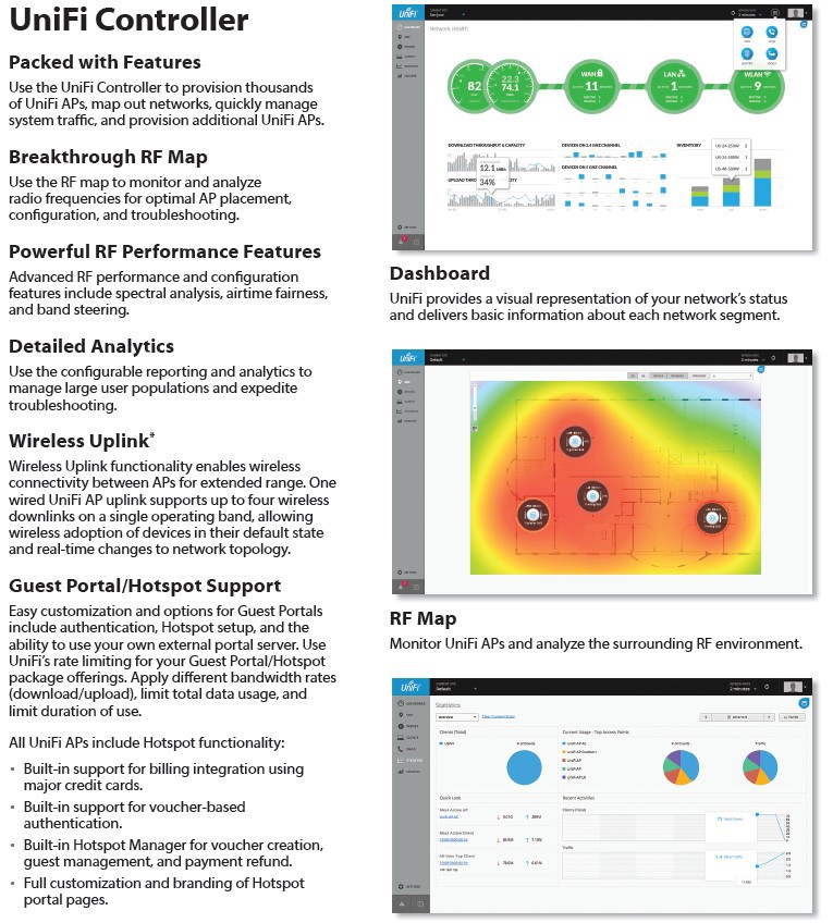 Jednotka UniFi spolupracuje se softwarem UniFi Controler, který umožňuje spravovat vytvořenou bezdrátovou síť přes webový prohlížeč.