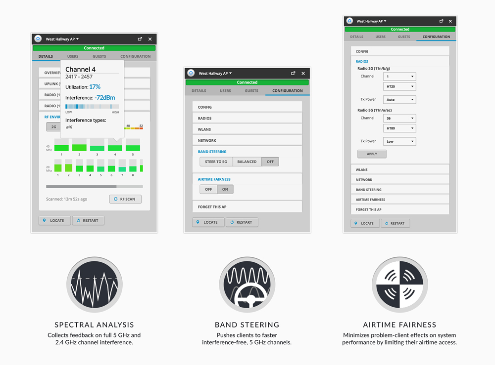 Jednotka UniFi spolupracuje se softwarem UniFi Controller, který umožňuje spravovat vytvořenou bezdrátovou síť přes webový prohlížeč.