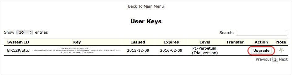 B) nebo autorizační klíč k Mikrotik účtu umožňující převedení licence na daný účet (naleznete: Toggle Menu -> Edit account details -> Account authorisation key).