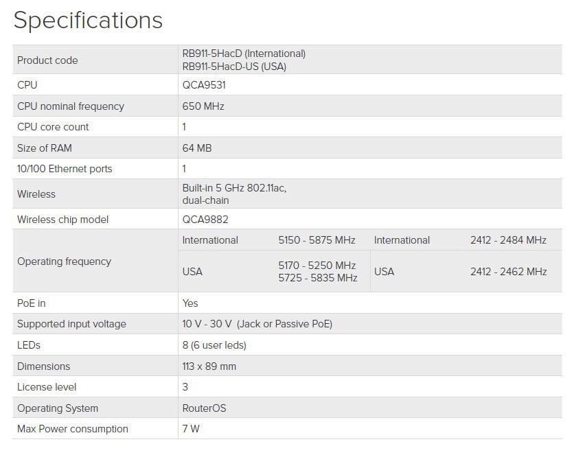 MIKROTIK • RB911-5HacD • 5GHz 802.11ac RouterBOARD 911 Lite5 ac