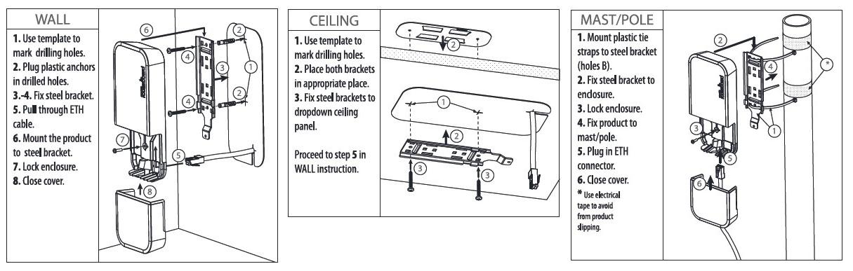 Pro venkovní instalace používat výhradně stíněnou kabeláž (FTP/SFTP) a jednotky korektně uzemnit (prostřednictvím integrovaného zemnícího členu či použitím ethernetové přepěťové ochrany).