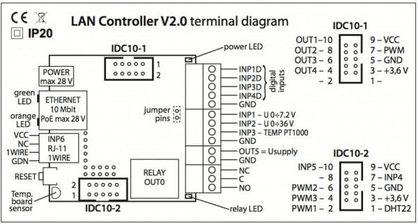 LAN Controller je jednoduché, ale inovativní zařízení. Modul slouží jako webový server, který pomocí hodnot různých senzorů umožňuje ovládat až 5 výstupů.