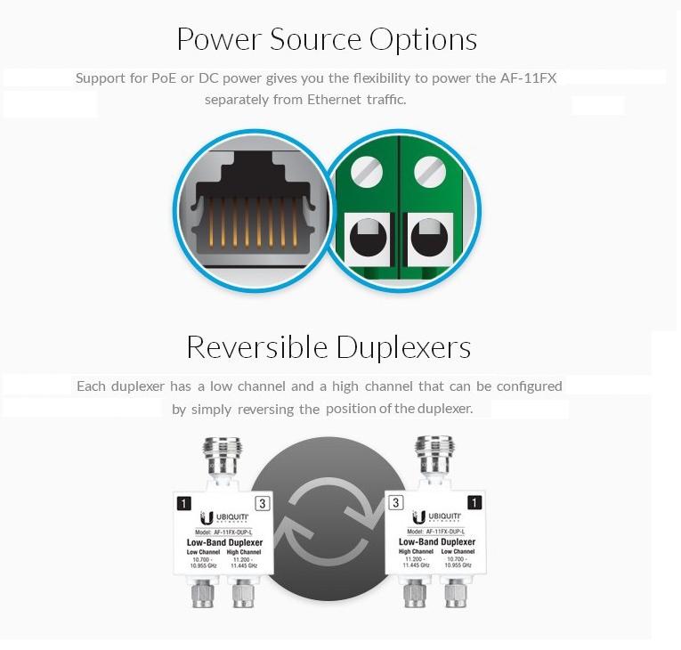 Duplexer AF-11FX-DUP-H rozšiřuje jednotku airFiber11FX o druhou polarizaci.
