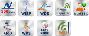 • Wireless Mode AP, WDS, AP+WDS, Repeater, Client, Multiple AP