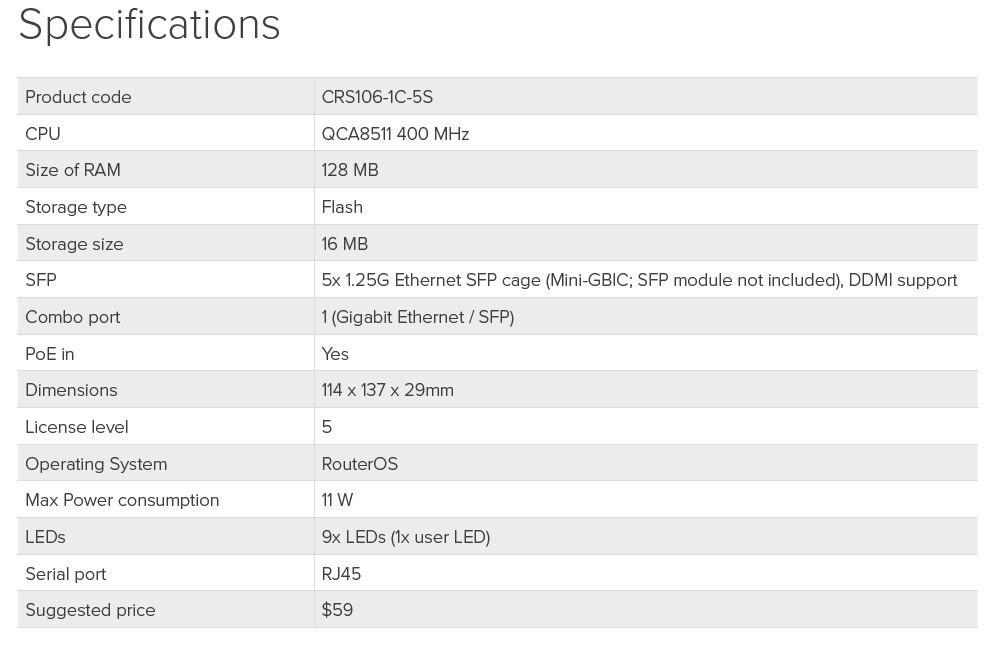 MIKROTIK • CRS106-1C-5S • Cloud Router Switch