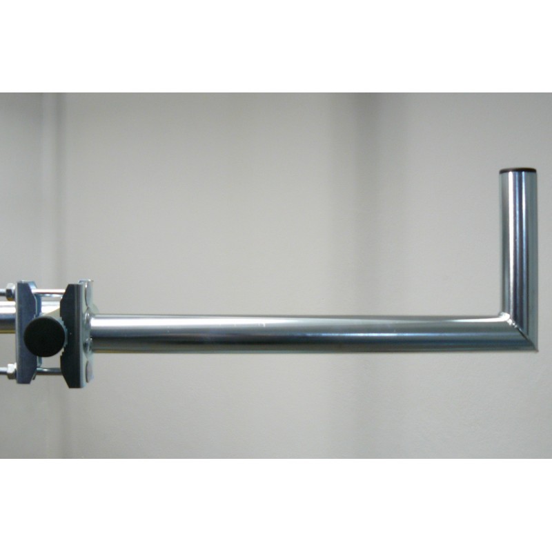 Držák vhodný k připevnění na balkónové zábradlí nebo vodorovnou trubku. Dostatečně robustní k uchycení satelitních parabol či větších antén.