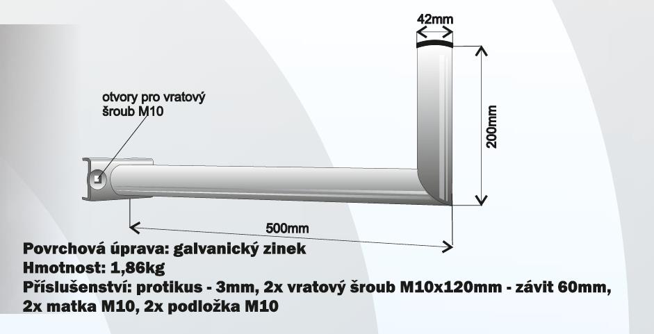 • balení: 1x protikus (tl.materiálu 3mm), 2x vratový šroub (10x120mm, závit 60mm), 2x podložka, 2x matka