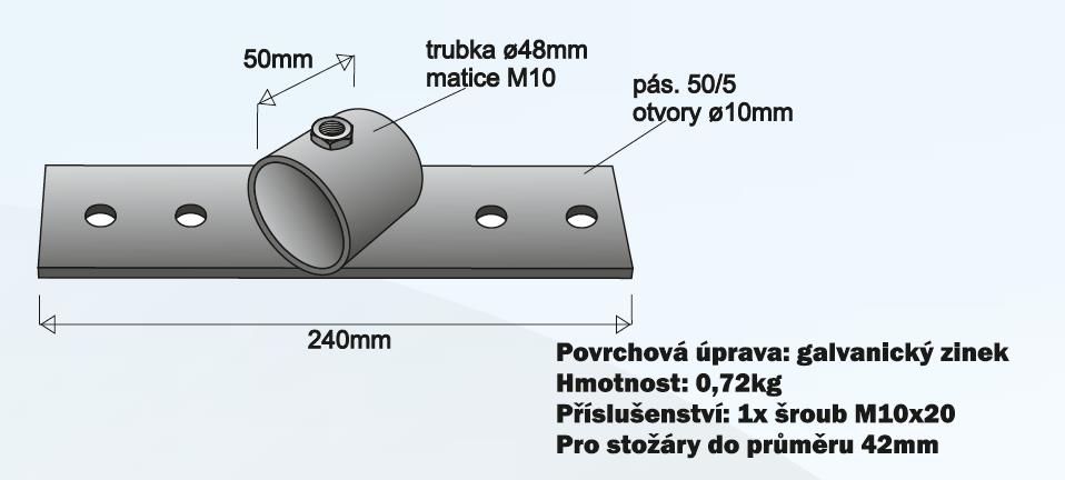 Držák na krov levý pro upevnění stožárů na trám střechy ve 45°poloze.