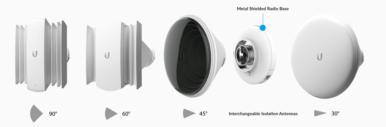 IsoStation lze použít s celou řadou sektorových antén "horn" z dílny Ubiquiti.