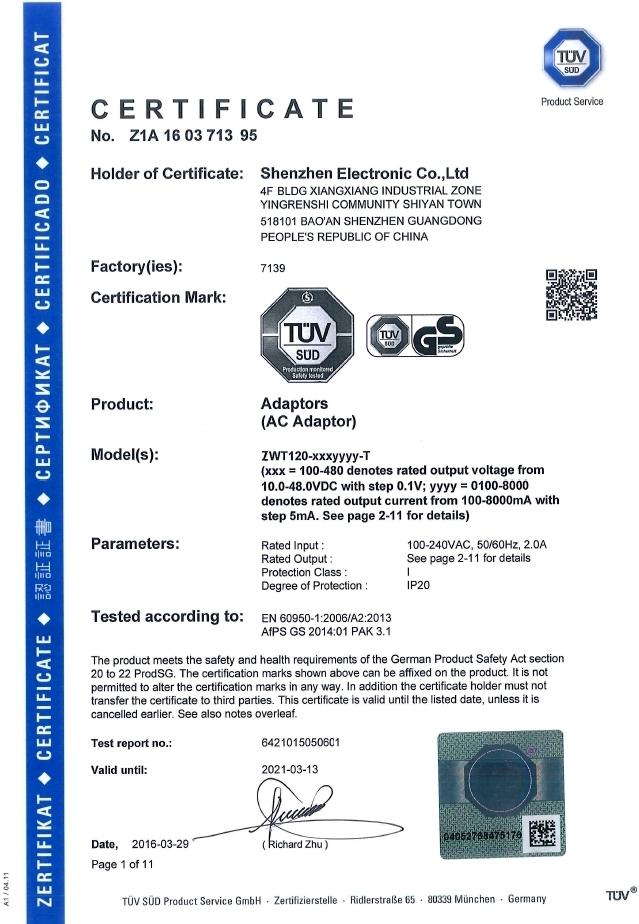 Prémiová kvalita zdroje doložená TÜV/GS/UL certifikáty garantuje vysokou životnost a spolehlivost instalací při použití tohoto prvku.