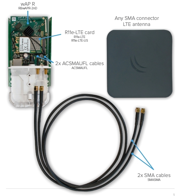 Originál Mikrotik metrový redukční kabel osazený konektory SMA male pro připojení externí antény k LTE jednotkám.