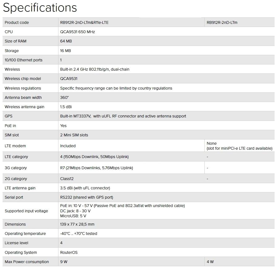 LtAP mini je také vybaveno jedním 10/100 Mbps LAN portem, sériovým portem RS232, dvěma SIM sloty a GPS modulem.
