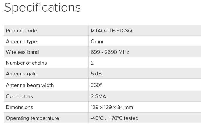 MIKROTIK • MTAO-LTE-5D-SQ • Všesměrová 5dBi LTE anténa mANT LTE 5o