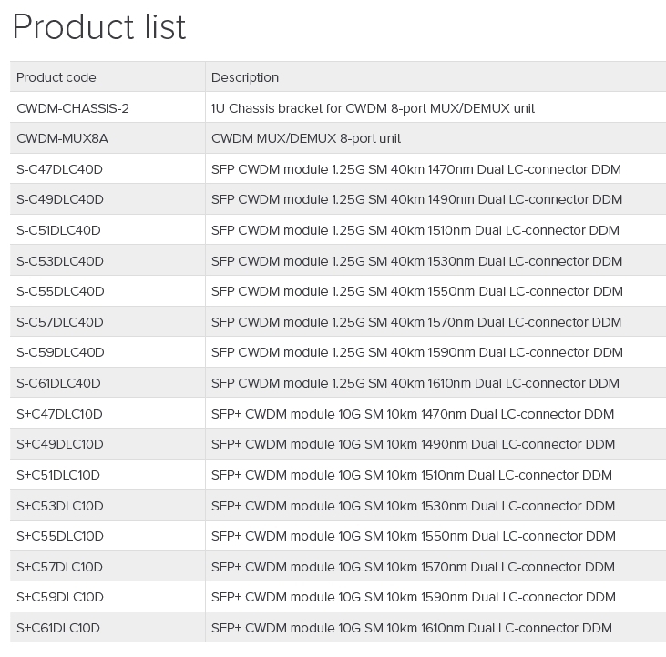 Vzhledem k dosahu až 40 km je v kombinaci s jednotkou CWDM-MUX8A ideálním řešením pro redukci optických kabelů na dlouhé trasy.