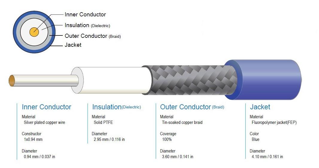 • nízkoútlumový vysokofrekvenční koaxiální kabel s vysokou ohybovou flexí a nízkoztrátovým vedením signálu