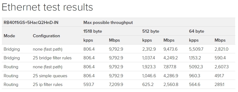 RB4011iGS+5HacQ2HnD-IN dokáže routovat až 2,5 Gbps, díky integrovanému akcelerátoru má v tunelu s robustním šifrování AES-256-CBC + SHA256 propustnost až 2 Gbps.