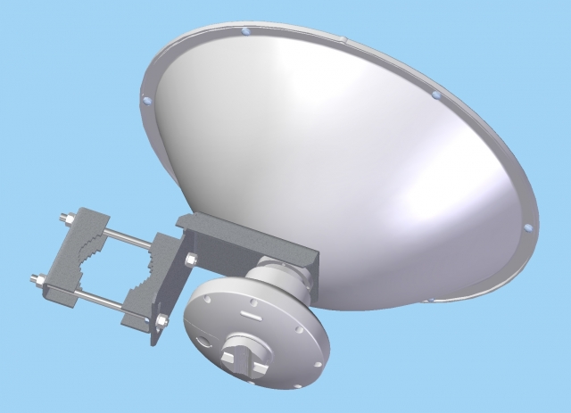 anténa pro UBNT PrismStation s vlnovodovým bajonetem, hluboká parabola zvyšuje izolaci mezi jednotlivými anténami na stožáru a zlepšuje vyzařovací diagram, precizní, masivní držák JDMW-900 vyvinutý pro profesionální mikrovlnné spoje