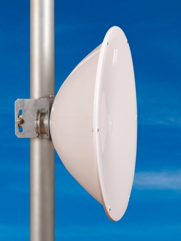 anténa pro UBNT PrismStation s vlnovodovým bajonetem, hluboká parabola zvyšuje izolaci mezi jednotlivými anténami na stožáru a zlepšuje vyzařovací diagram, nová koncepce s rozšířeným frekvenčním pásmem