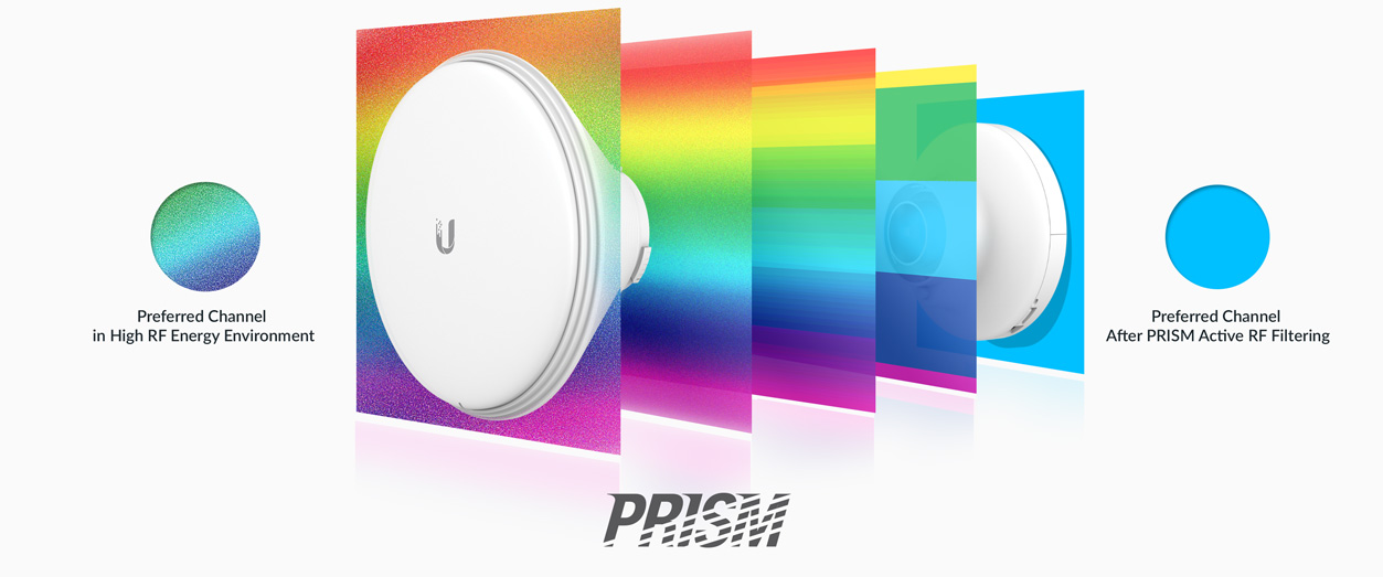Stíněná venkovní radiová jednotka PrismStation s technologií, která izoluje radiovou komunikaci mezi zařízeními. PS-5AC díky technologii airPrism dosahuje propustnosti až 500+ Mbps. Integrována 2.4GHz wifi část, která slouží pro ovládání