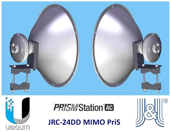 Sestava UBIQUITI • PrismLink5AC • 5GHz P-t-P spoj PrismStation 5AC s JIROUS parabolami JRC-24 DD PrisM