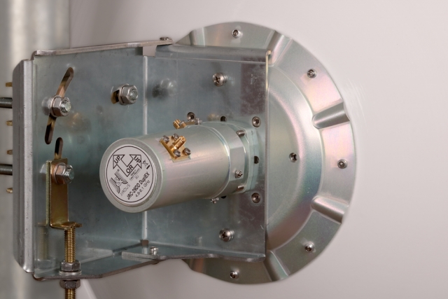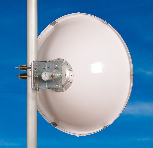Dvoupolarizační anténa Full duplex nebo MIMO, horizontální/vertikální nebo 2x45° polarizace, vysoká izolace mezi konektory umožňuje plně duplexní spoje, hluboká parabola zvyšuje izolaci mezi jednotlivými anténami na stožáru a zlepšuje vyzařovací diagram