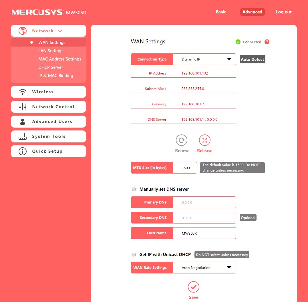 MERCUSYS • MW305R • 300Mbps WiFi router