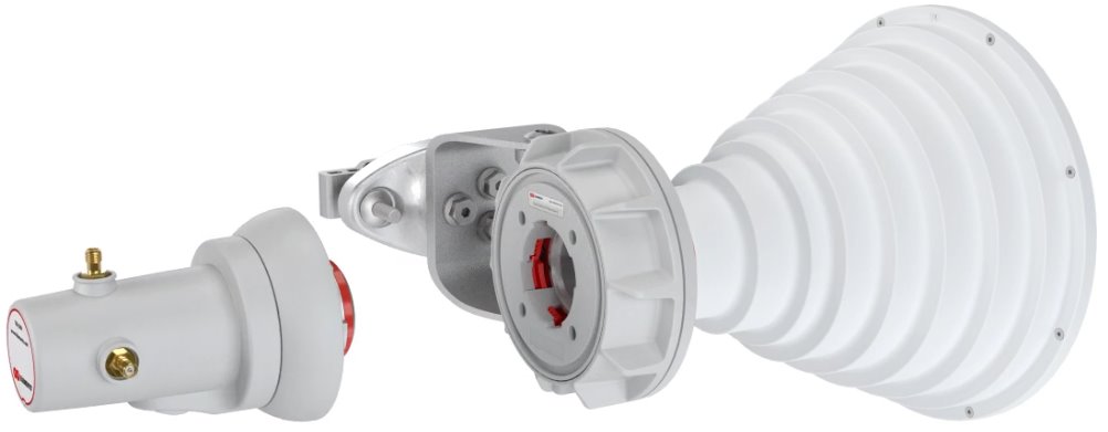 Konektory RSMA-female jsou umístěny přímo na vlnovodu, čímž se vyloučí použití vnitřních koaxiálních kabelů a minimalizace ztrát na nezbytném minimu.