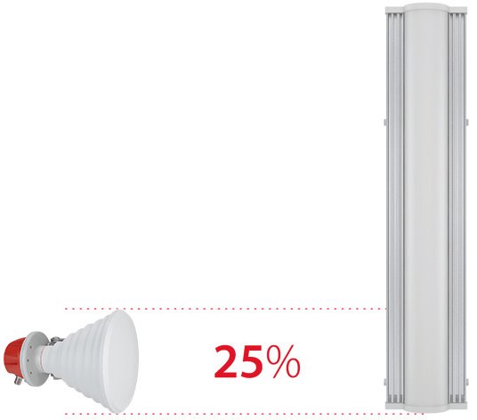 Unikátní vyzařovací charakteristika, minimální boční laloky a extrémně nízké zpětné záření umožňuje umístění více antén na jednom bodě i vybudování více samostatných bodů, což umožní lépe rozložit zátěž na jednotlivá AP a zvýšit tak rychlosti k jednotlivým klientům.