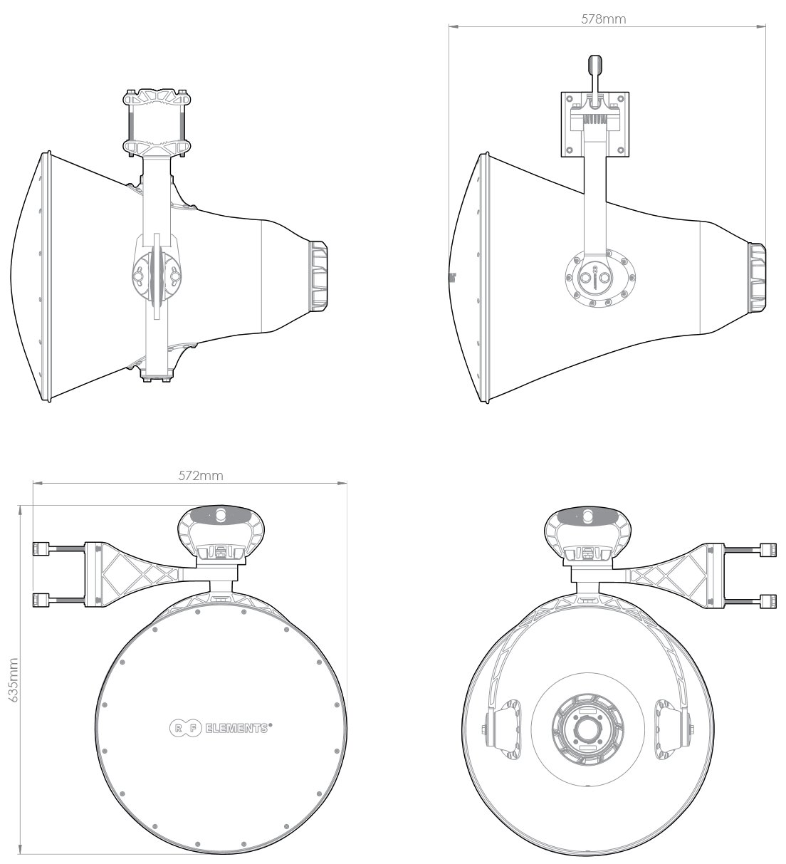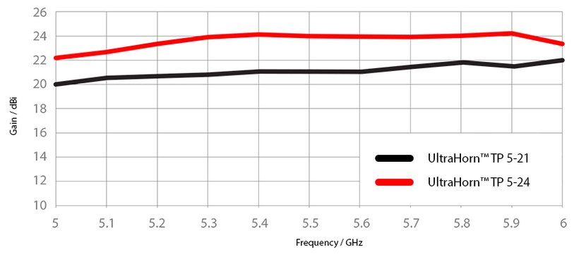 UH-TP-5-24 UltraHorn anténa z dílny RF Elements je směrová anténa pro point-to-point řešení se ziskem 24dBi, nízkým vyzařovacím úhlem 11° a je určená pro pásmo 5GHz. UltraHorn anténa nabízí všechny výhody klasických směrových antén a k tomu odstraňuje problémy s bočními laloky, které skoro eliminuje.