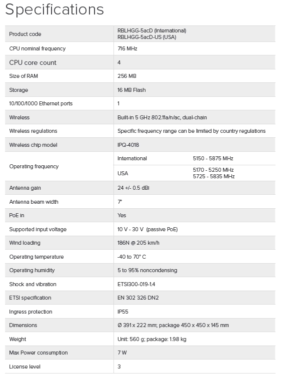 BAZAR • MIKROTIK • RBLHGG-5acD • 5GHz outdoor 802.11ac 24,5dBi jednotka LHG 5 ac