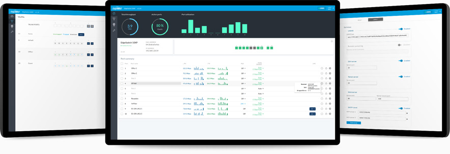 Nové grafické uživatelské rozhraní je přehledné a umožňuje nastavit a monitorovat switch. Správa je možná i v softwaru UNMS (Ubiquiti Network Management System).