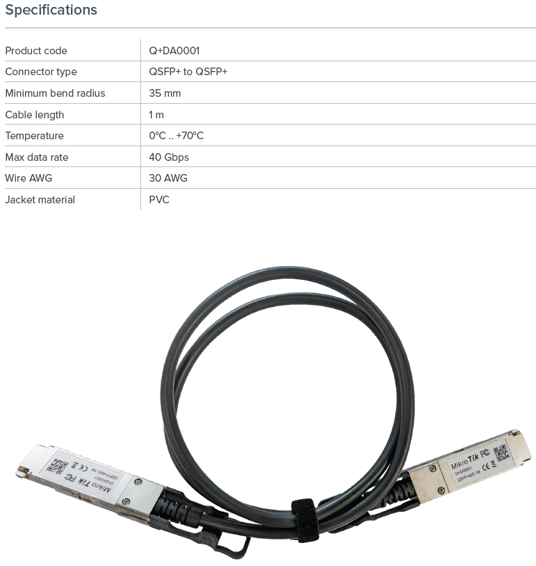 MIKROTIK • Q+DA0001 • 40 Gbps přímý propojovací QSFP+ kabel (1m)